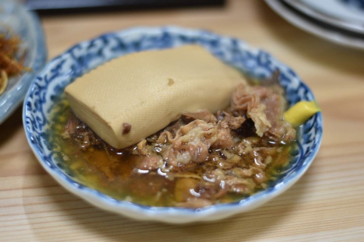とろとろに煮込まれた牛すじの上に味がよく染み込んだお豆腐。