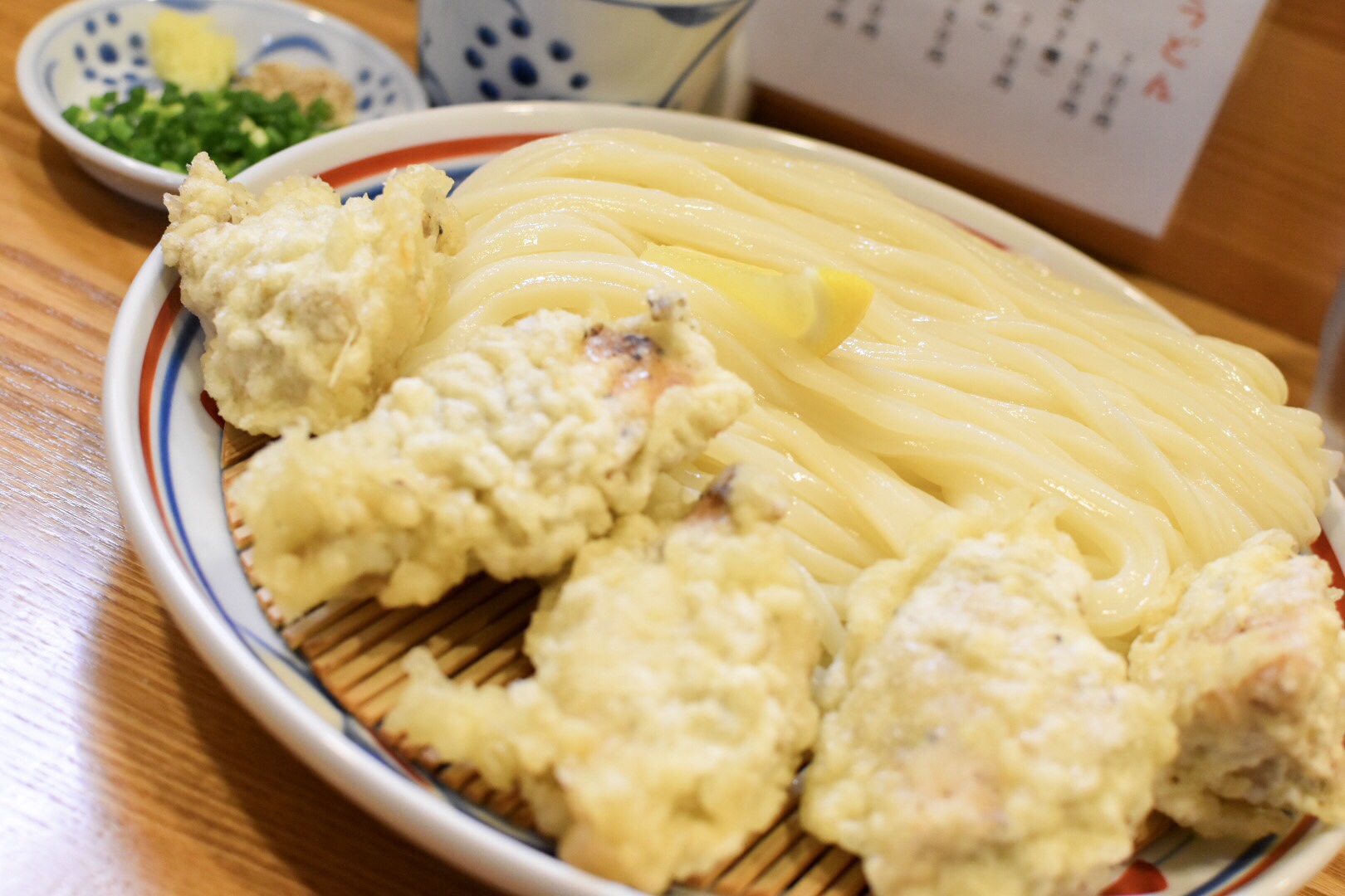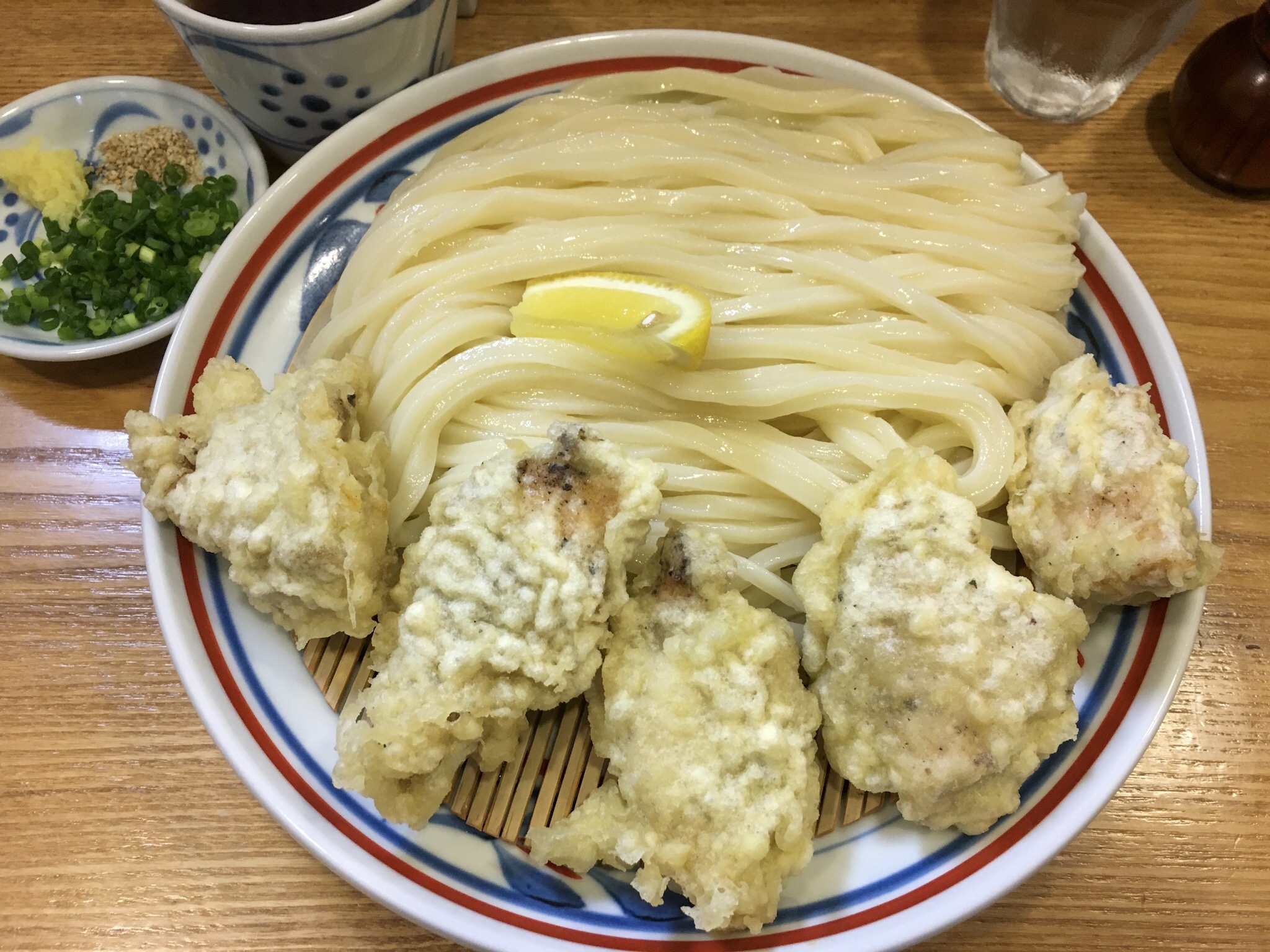 ゴロゴロっとしたかしわ天。ボリューム満点です。サクッ衣が香ばしく、噛むとジュワッと鶏肉の旨味が溢れます。食べてあと引く感覚は黒胡椒のパンチ。なかなか強烈です。添えてあるレモンをかしわ天に搾ってさっぱりといただくこともできます。