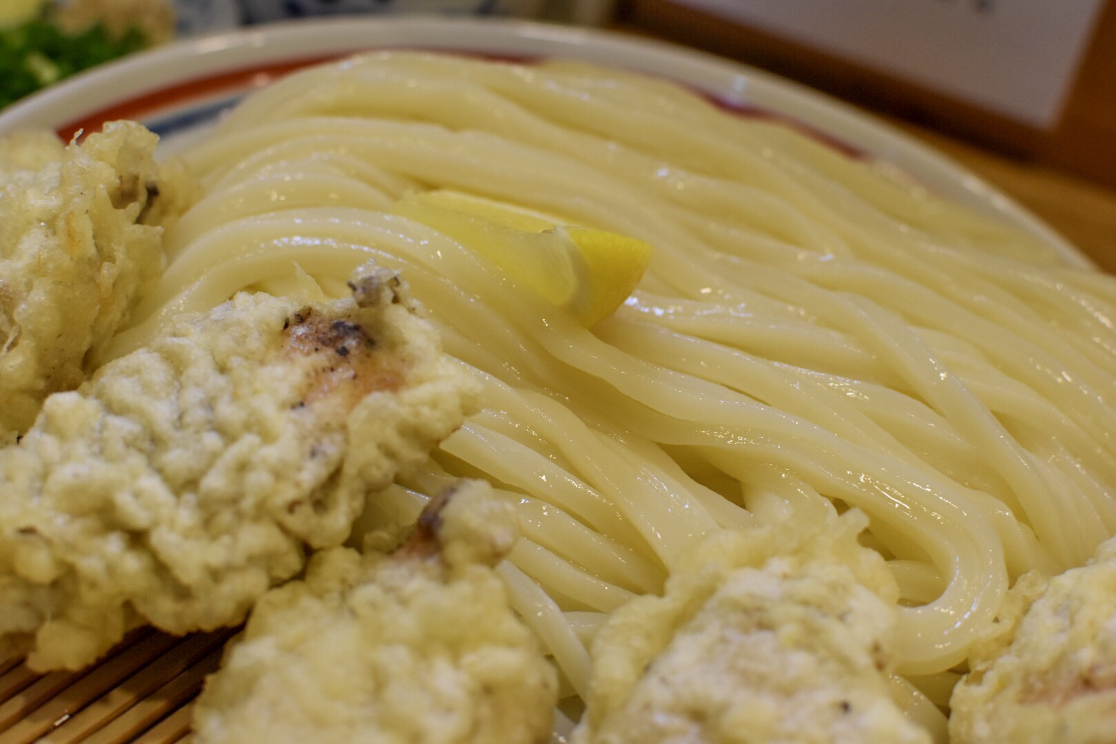 ツルッと滑らかで瑞々しくかつ、噛んだ時に心地よく跳ね返る状態。表面は軟らかいけれども噛み切ろうとすると力がいる。うどんのコシというものを見事に表現されています。(最初に訪れたお店でこれは凄いな)