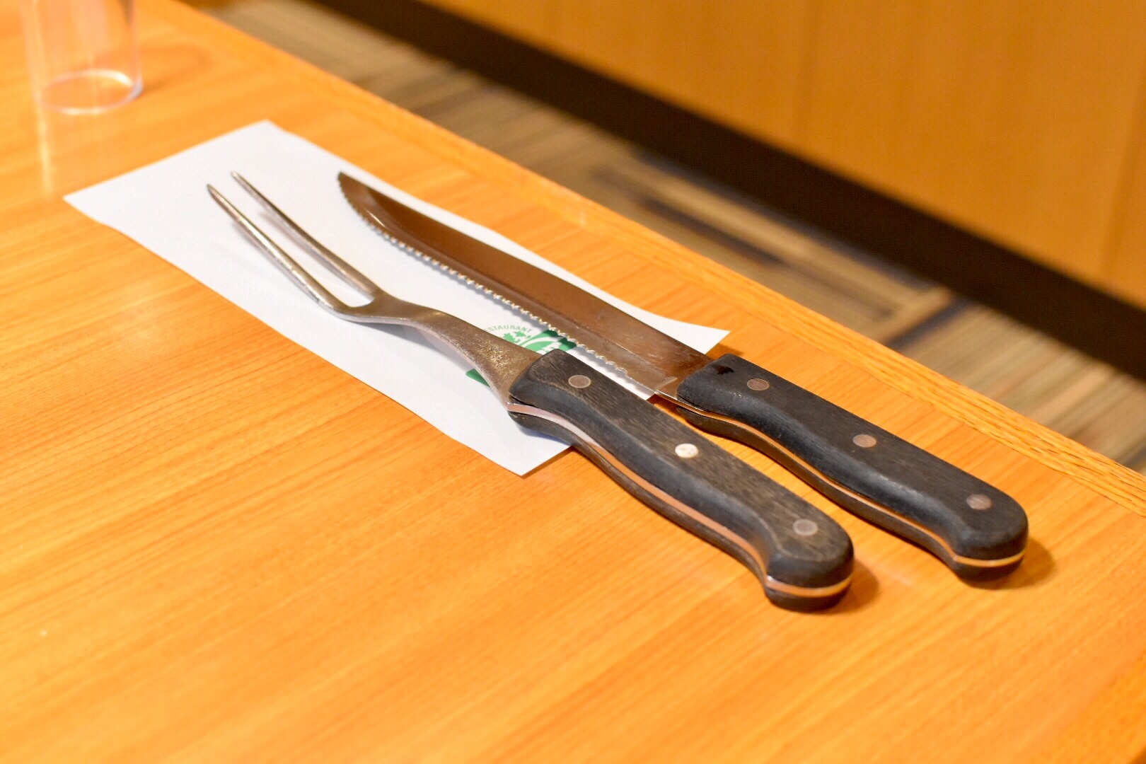まず最初に、カット用のナイフとフォークがスタンバイされます。
