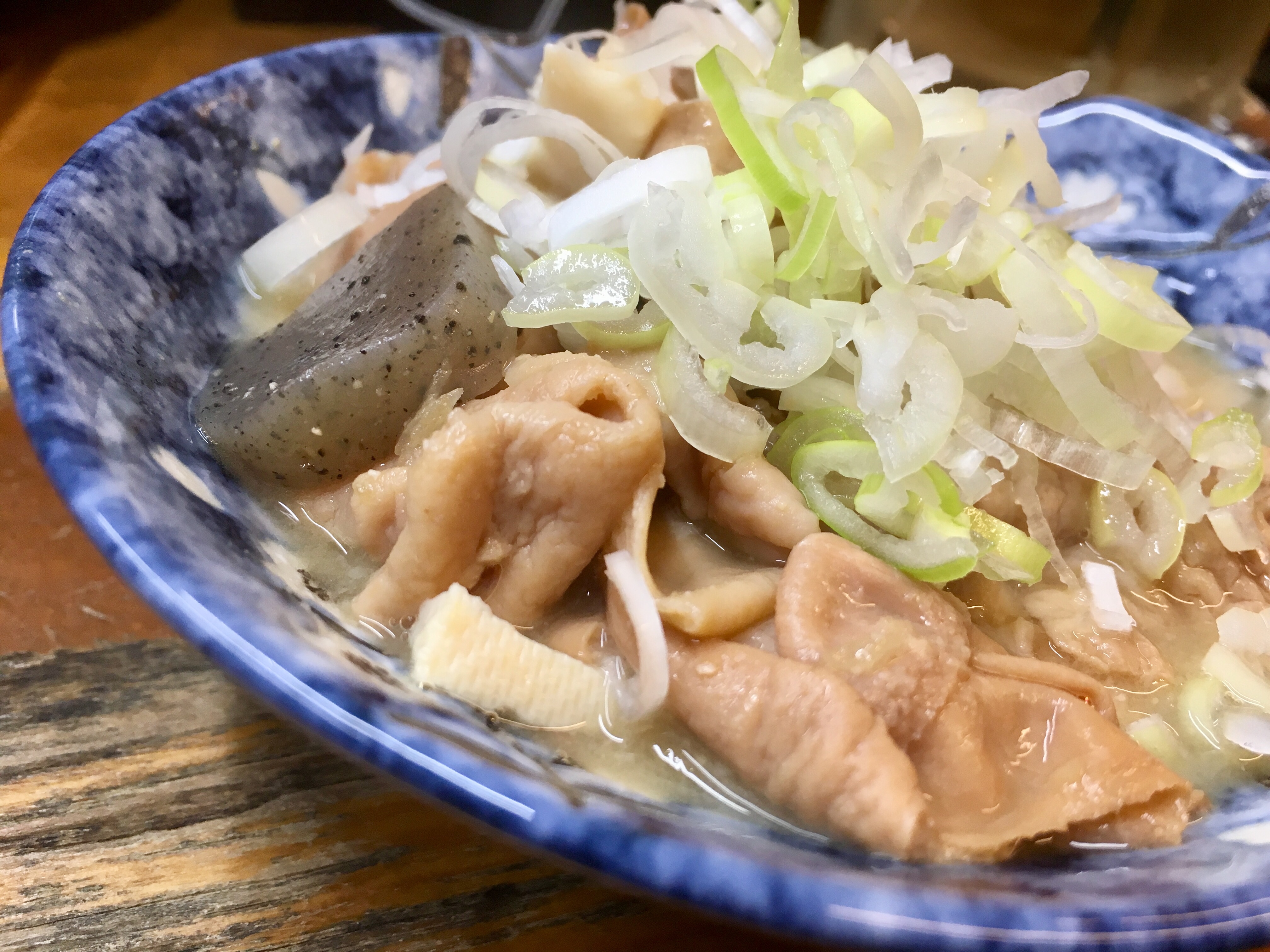白味噌ベースに、とても柔らかいモツ。豆腐や野菜が入っていて、コレは美味い‼︎臭みも無いし160円とは思えないくらいのボリューム。