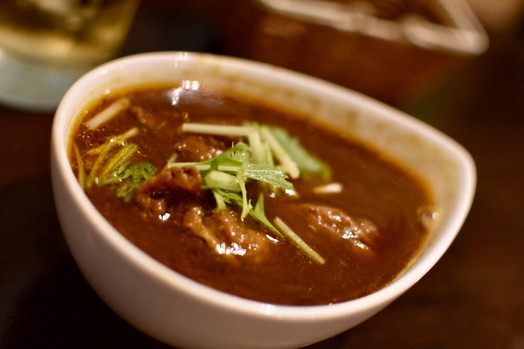 手羽元は解れるほど柔らかく骨離れもツルン。本格的なスープカレー。そう。ミニスープカレーといってもいいスパイスの効いたカレースープがまさかのツマミ。手羽元が二本入っている。