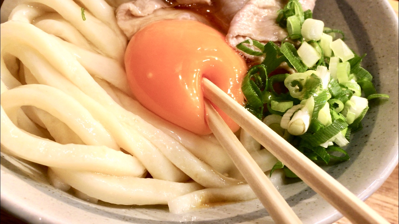 黄身に絡ませて豪快にズズズっ!ギュギュっと詰まった力強いうどん。噛みしめるごとに味わいが溢れ出てきます。