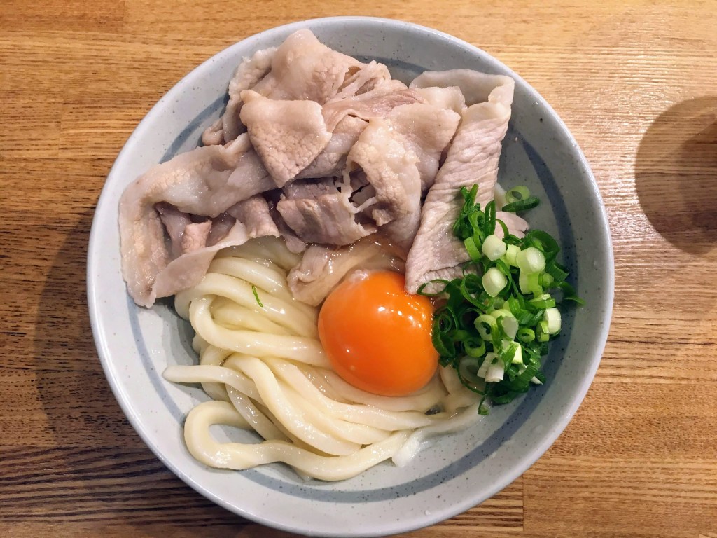 出汁の入っていないうどんに、店主こだわりの林SPF豚肉と卵黄。