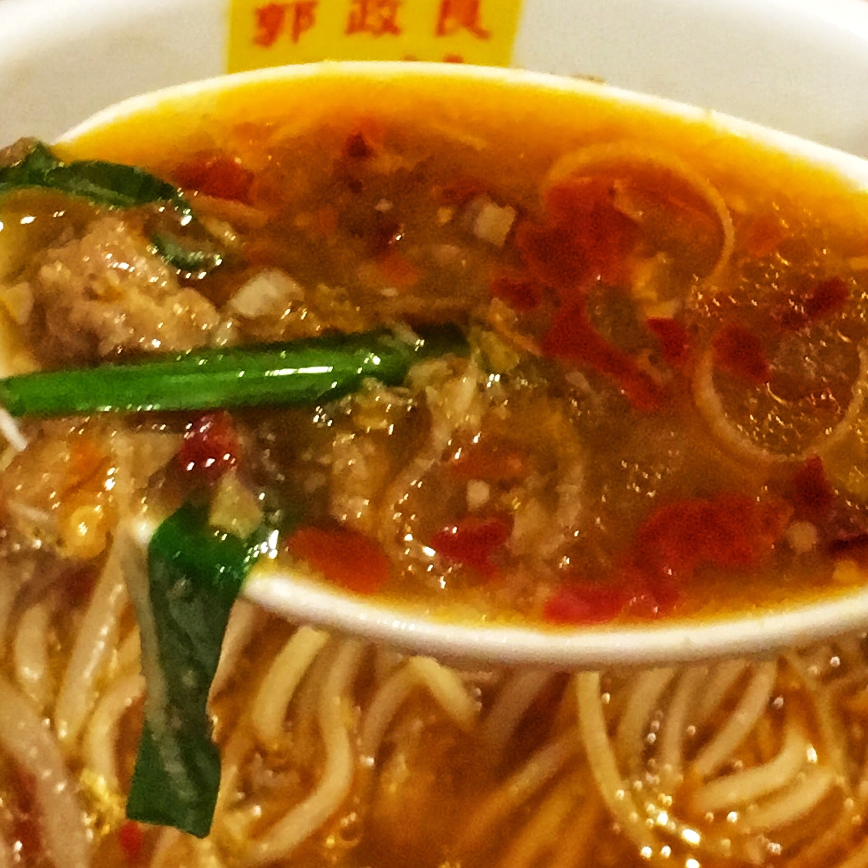 ピリ辛の醤油ベースのスープにピリ辛のミンチが特徴の辛口ラーメン。