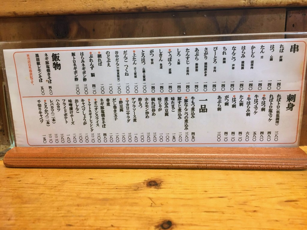 メニューはこんな感じで串は140円〜