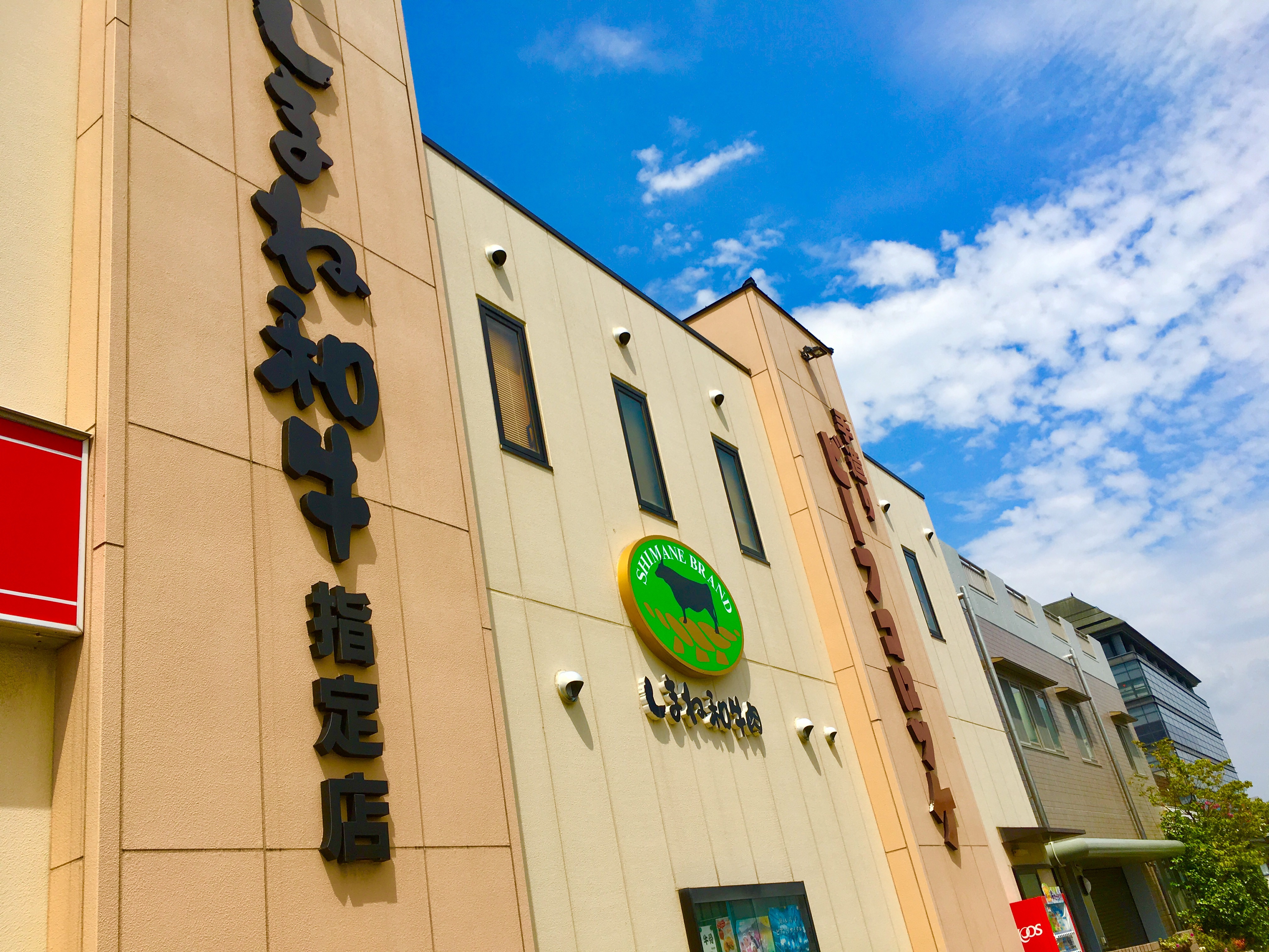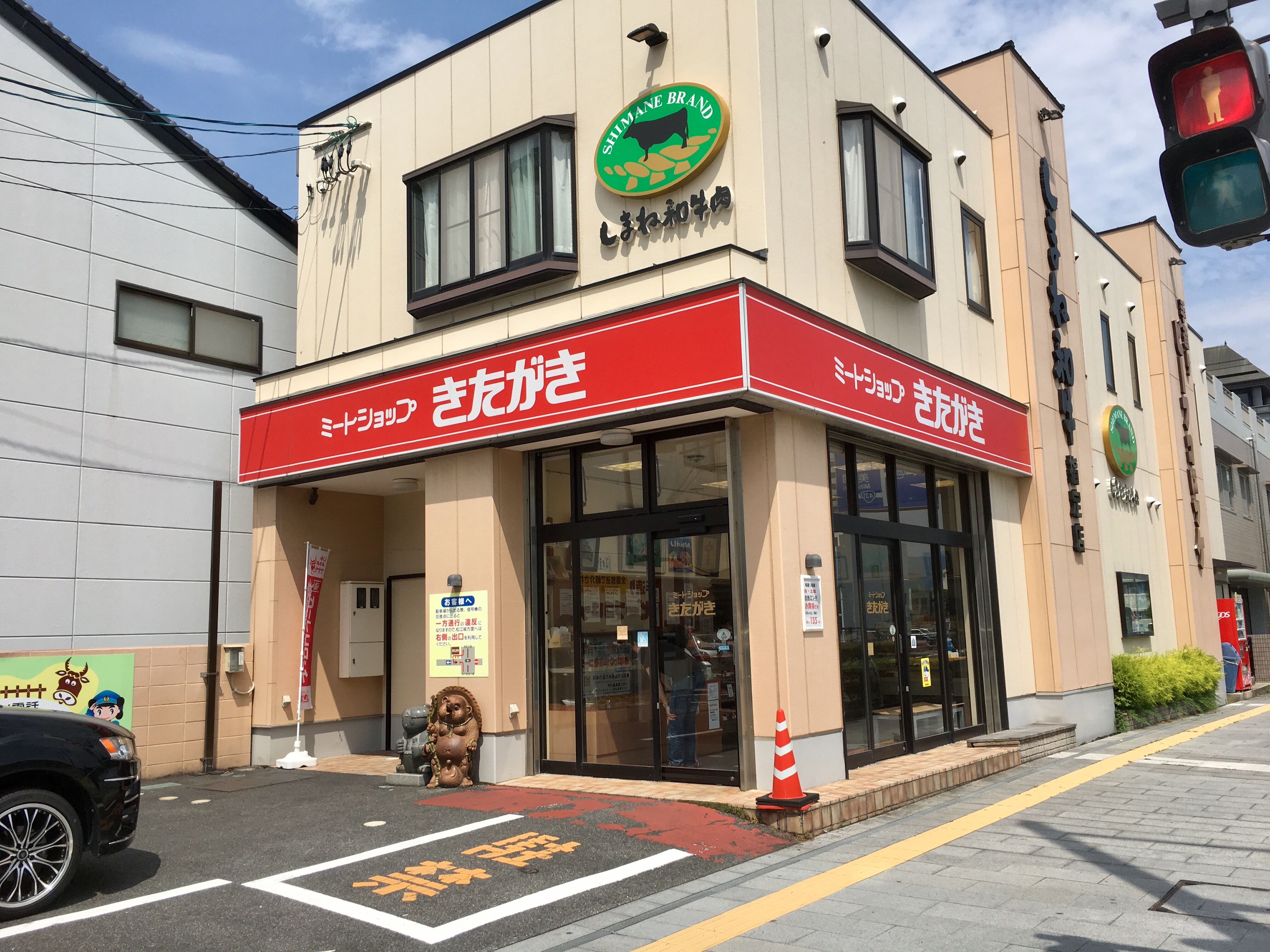 松江駅からバスで5分ほど。徒歩圏内。/お肉屋さん
