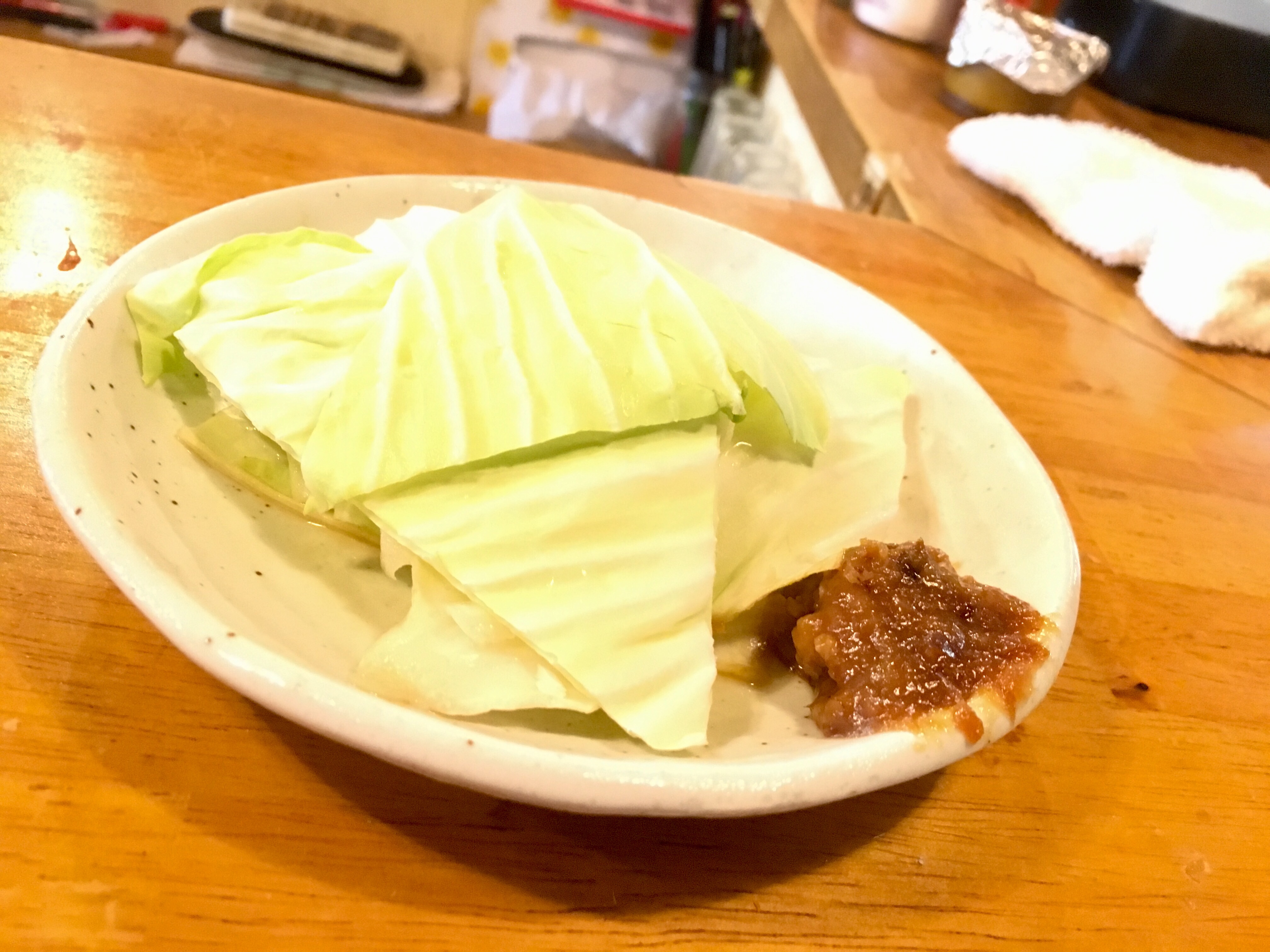 味噌が添えられたキャベツと共に登場。