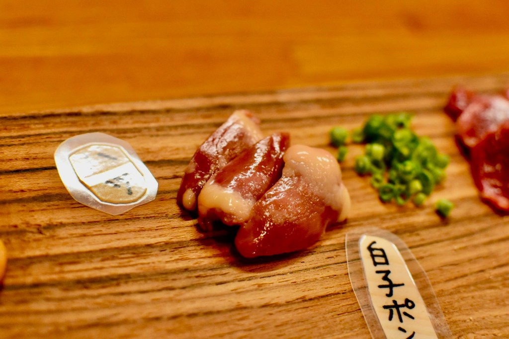 希少部位中の希少部位ではなかろうか?取れる量が少なく、またコレは相当鮮度が必要です。レバーのよりも柔らかい、クニャっとした食感とほのかに内臓系の味ながらと独特の甘み。
