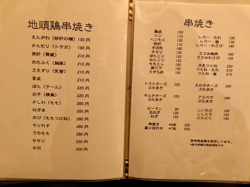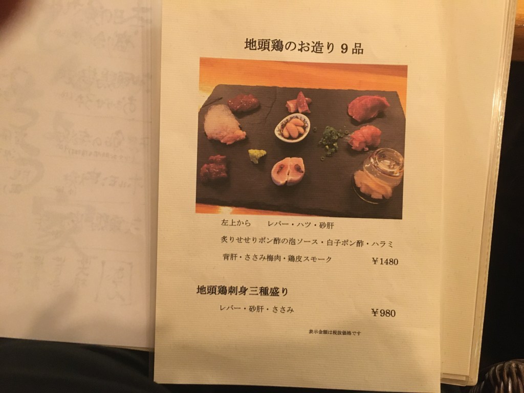 宮崎県が誇る地鶏「みやざき地頭鶏」の専門店。特に希少部位が食べれるとの事。