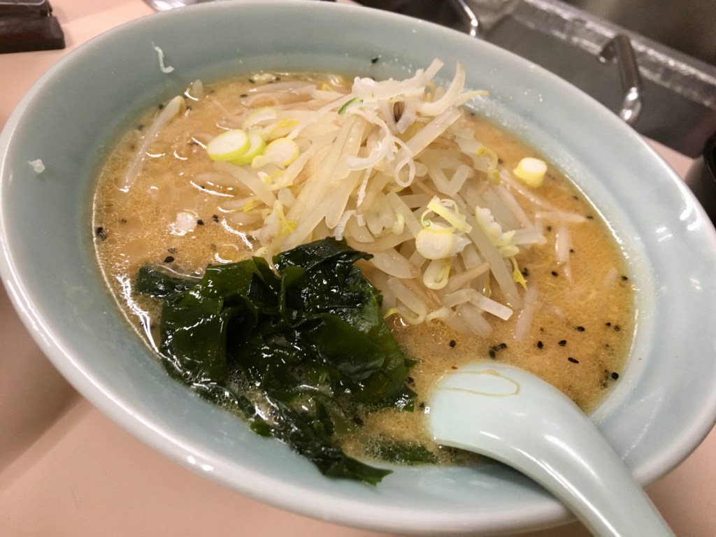 合わせの色合いの味噌に、調味料を加え、スープは、厨房の中の寸胴で、おそらくガラや野菜などでとった出汁。 もやしは、中華鍋でスープと合わせ炒めた(煮た?)感じで茹でられている感じです。