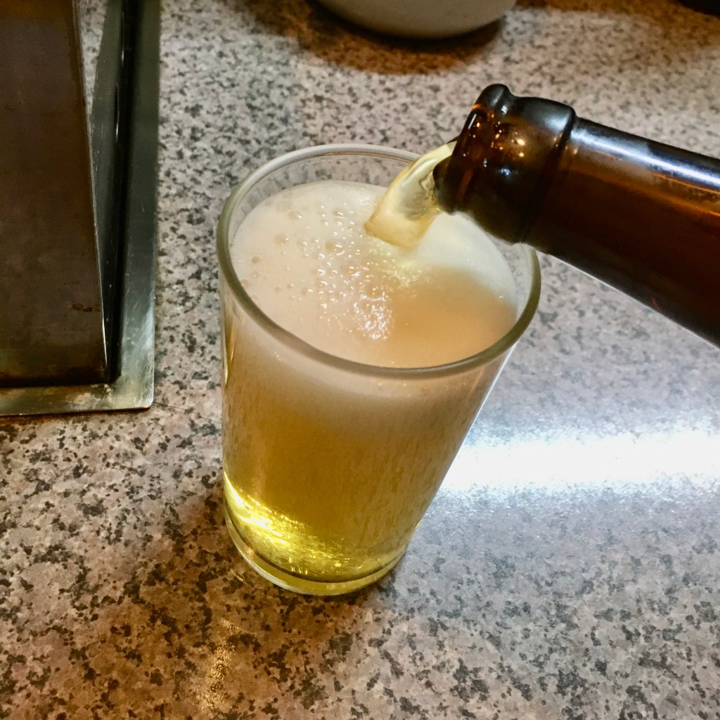 目の前の角鍋から立つ湯気を見ながらのビールをグラスに注ぎ、ゴキュゴキュっと。