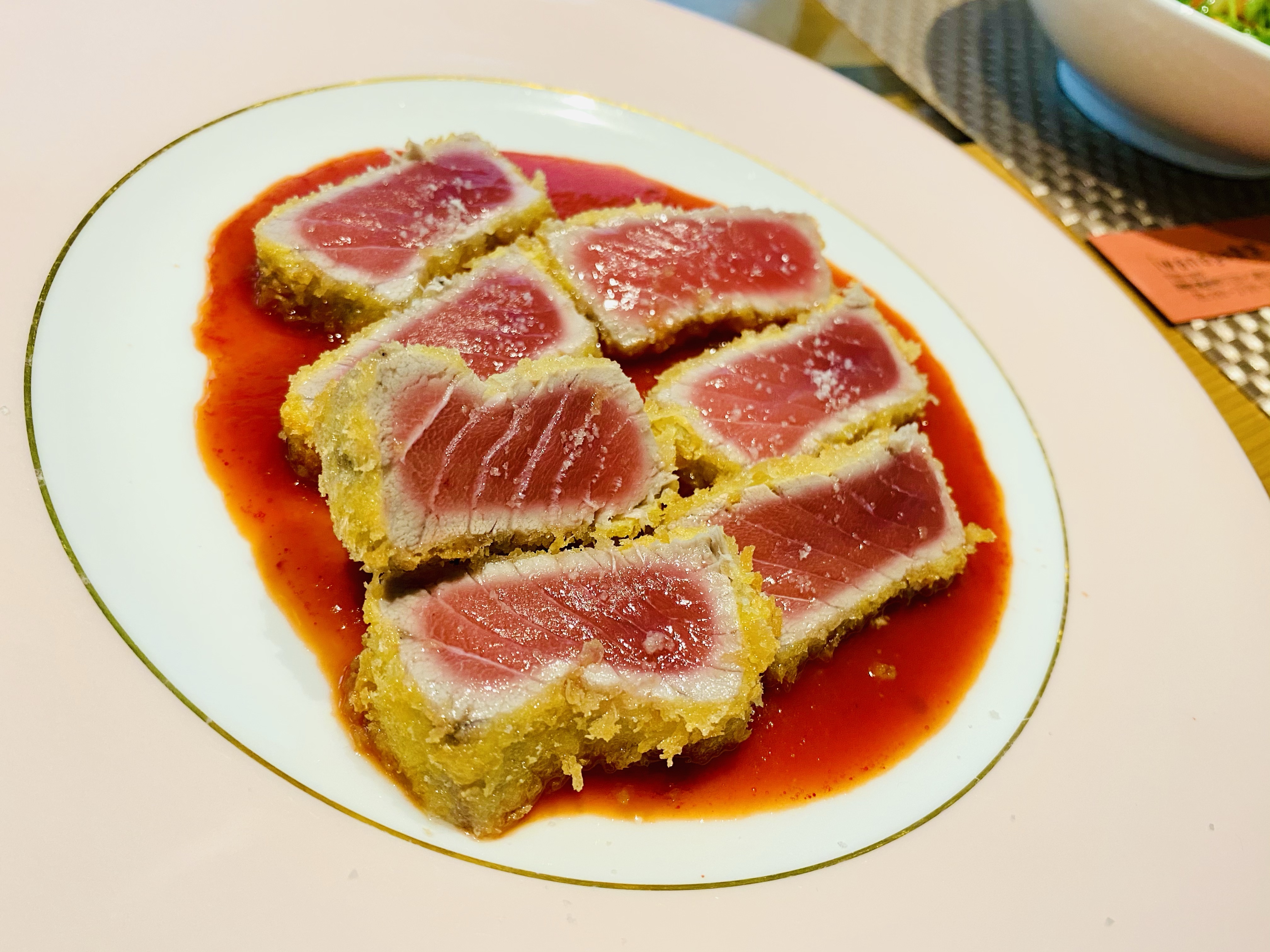 絶妙な火加減で、ほんのり温かいマグロをサックサクの衣が多います。