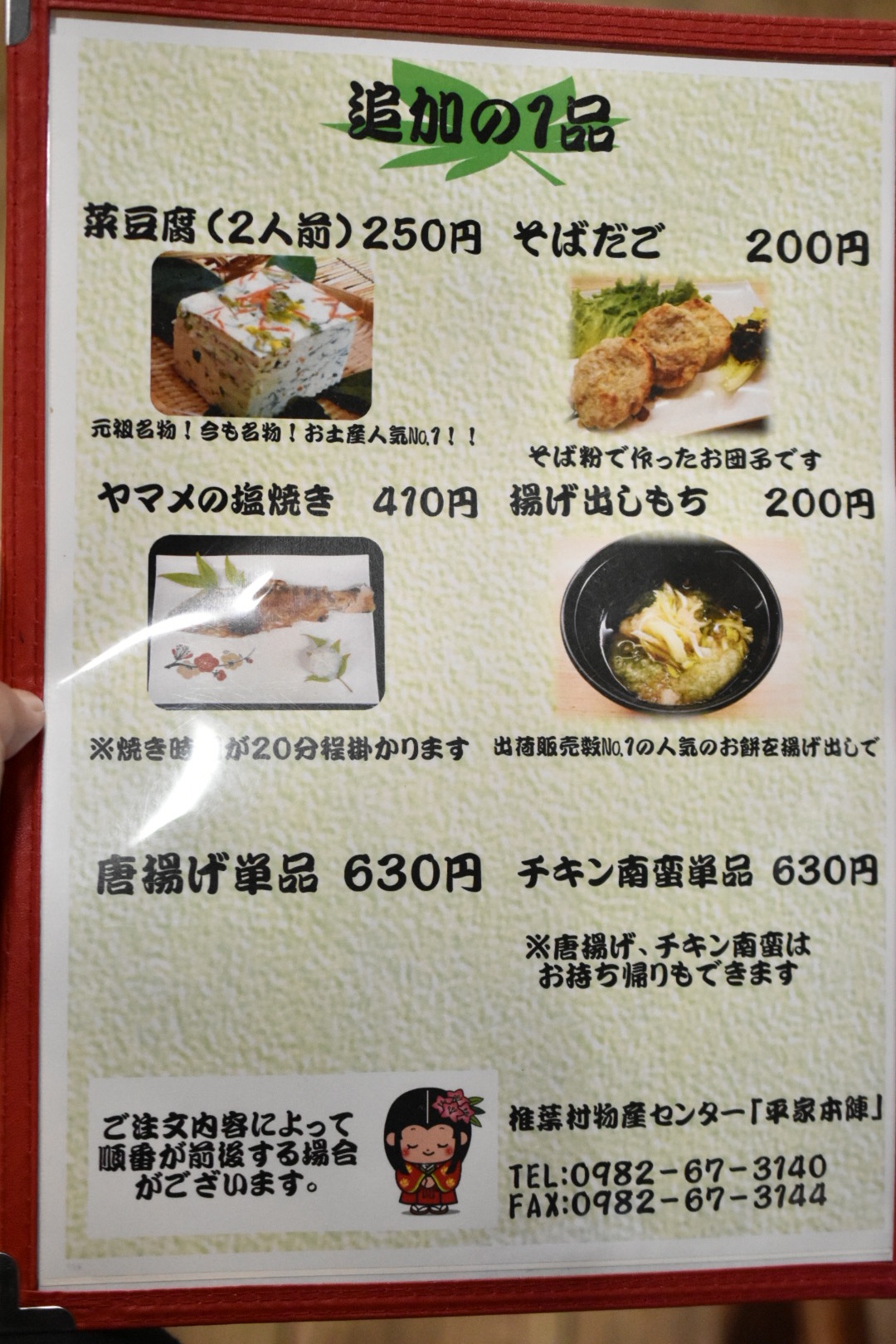 こちらがお目当ての「椎葉そば」。なんと1日20食限定だと言う。この日最後の一食。何とかギリギリ間に合って注文することができました。到着した時間が13時半とは言え、結構なくなるもんなんだなぁと。
