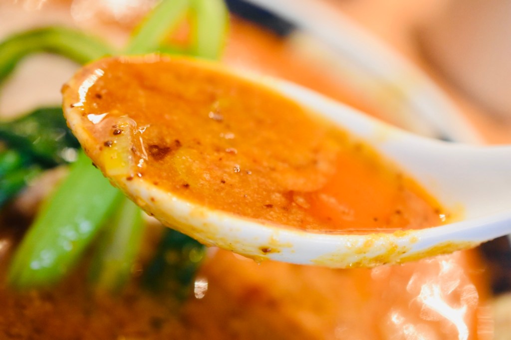 醤油ベースに芝麻醤が浮いているスープと表現すればいいだろうか。飲むと胡麻の香りと醤油の旨味を感じます。香辛料の程よい辛さが食欲を増幅させます。