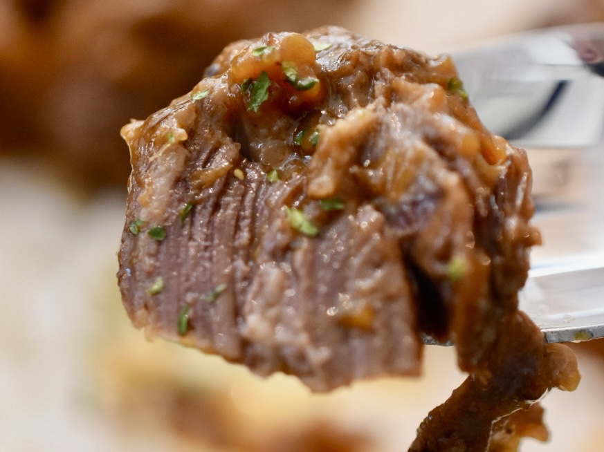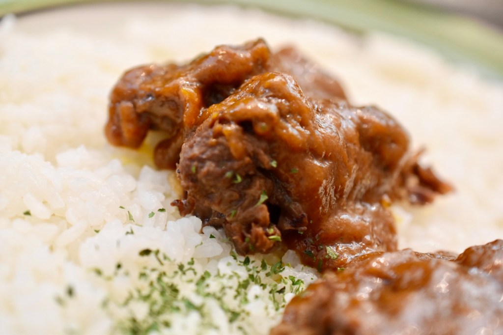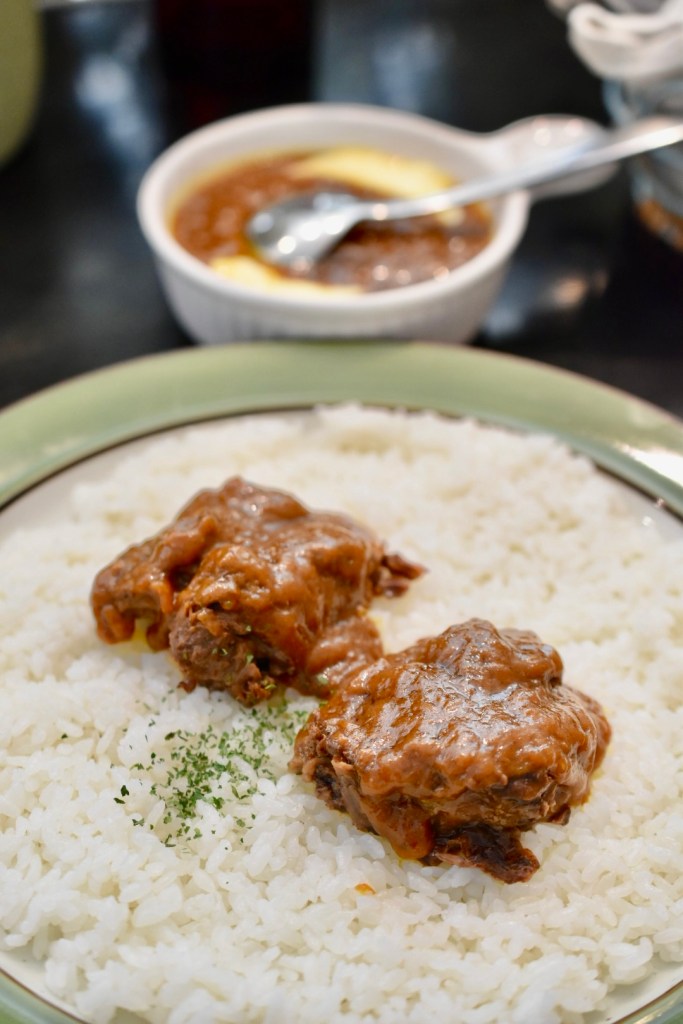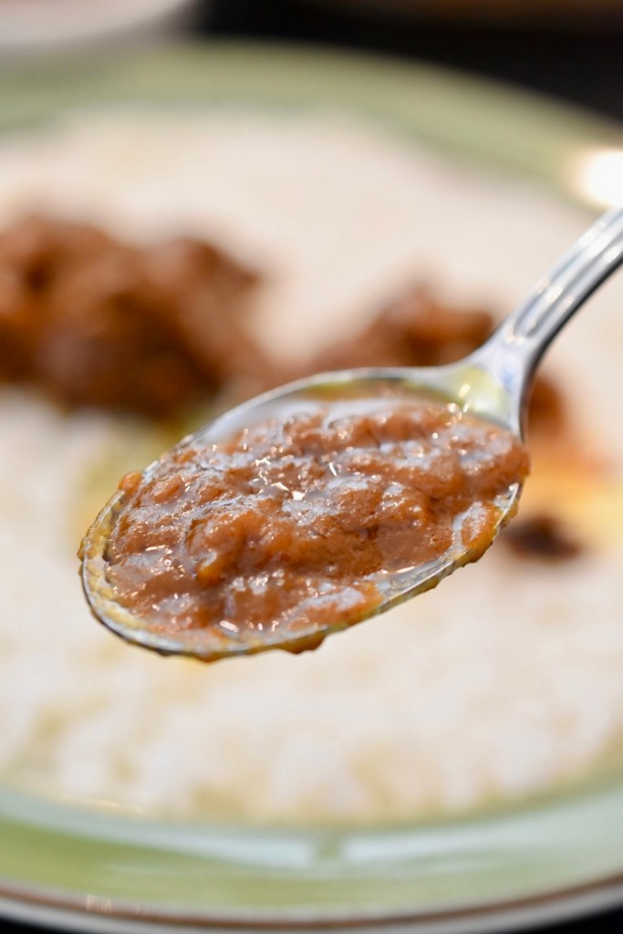 一体どれほど煮込めばこの仕上がりになるのか。とにかく柔らかい。繊維に沿ってスプーンを入れると肉の繊維一本一本がホロホロっと解けていく程。