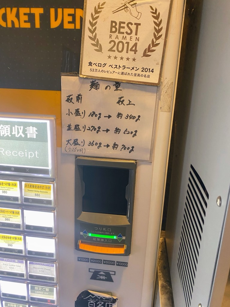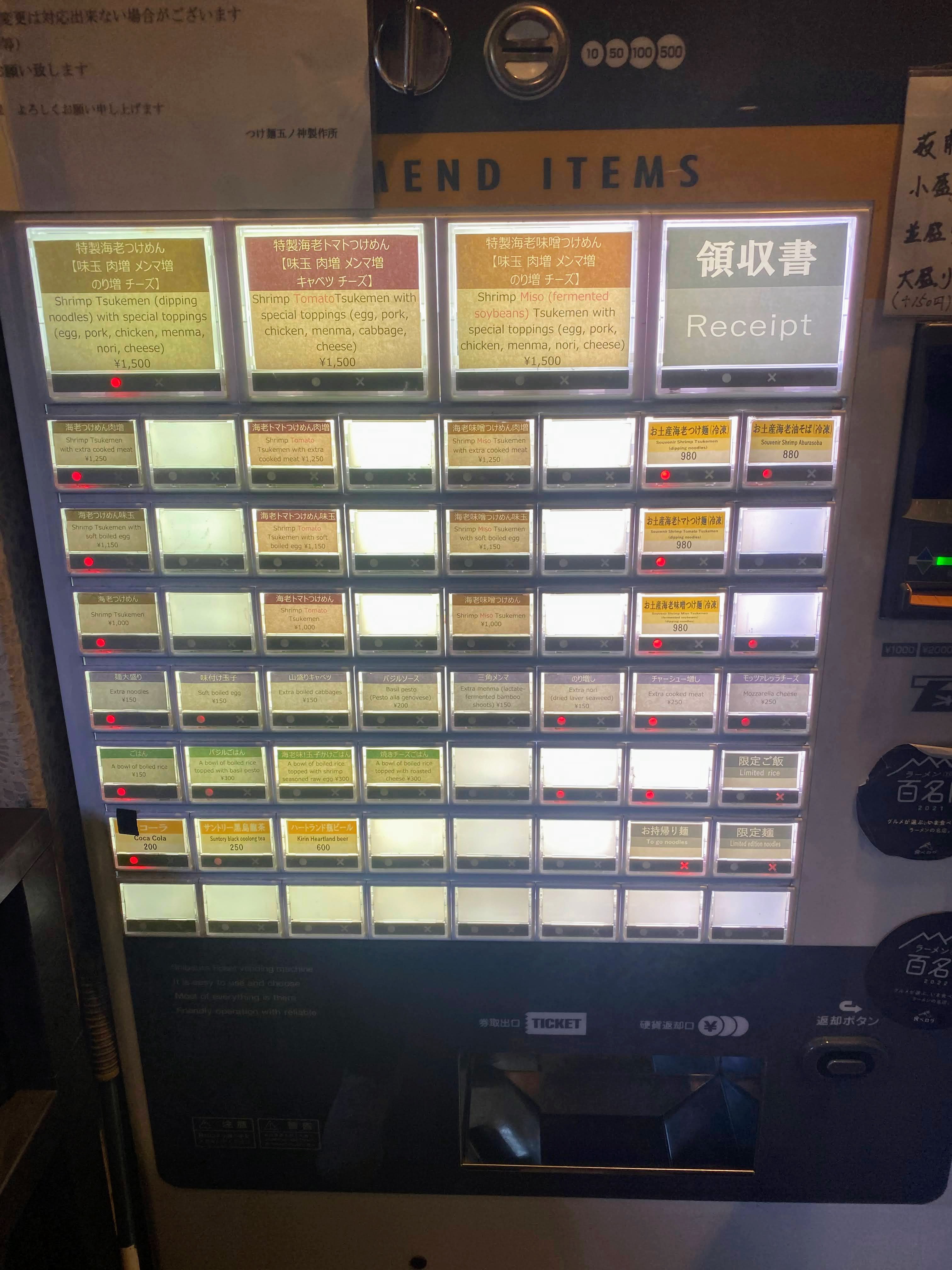 お店の外で並んでいる際にスタッフさんが順番を管理しながら券売機に誘導してくれる。並んでいるお客様は海外の方が多い。券売機もそれに対応しており