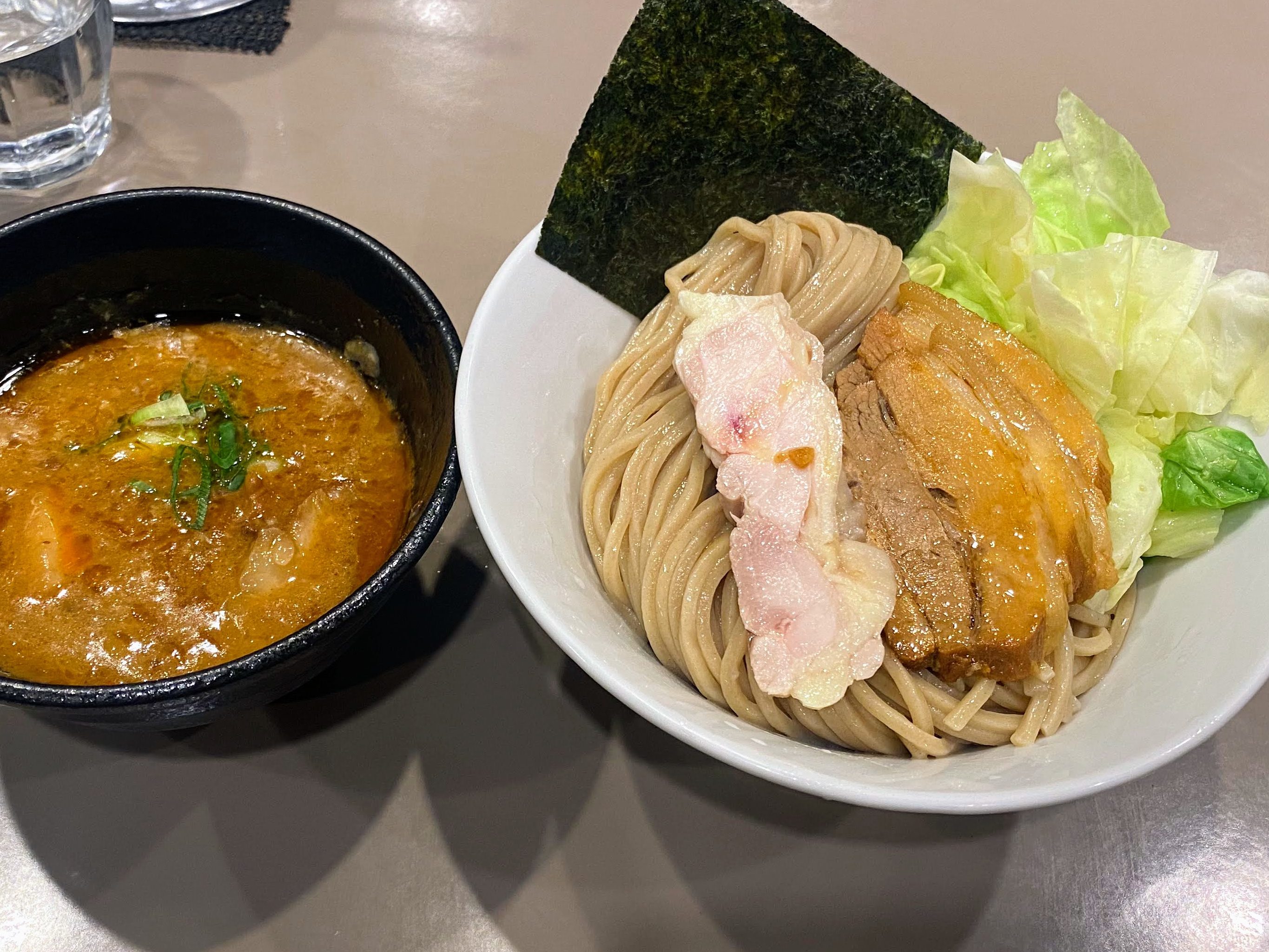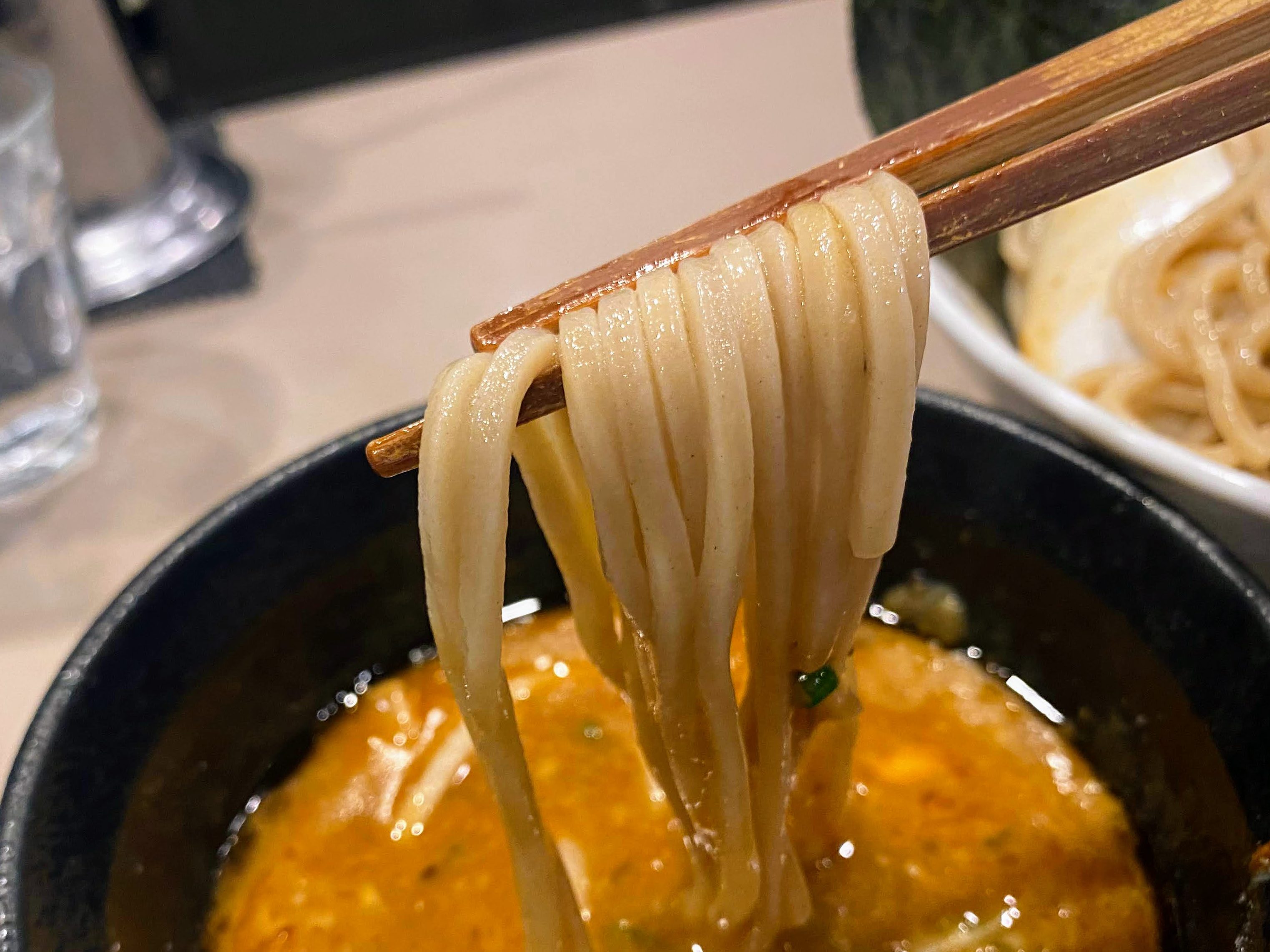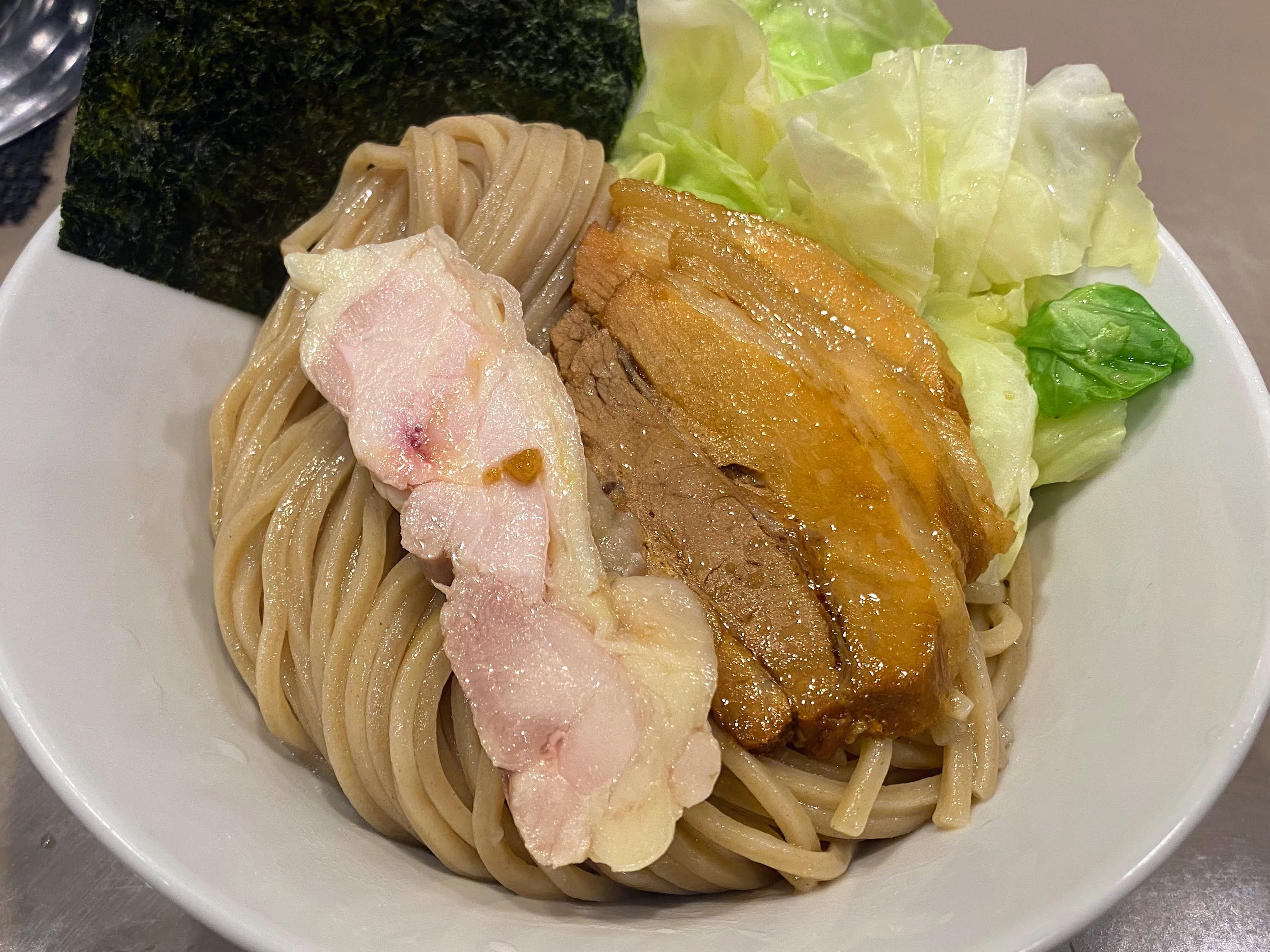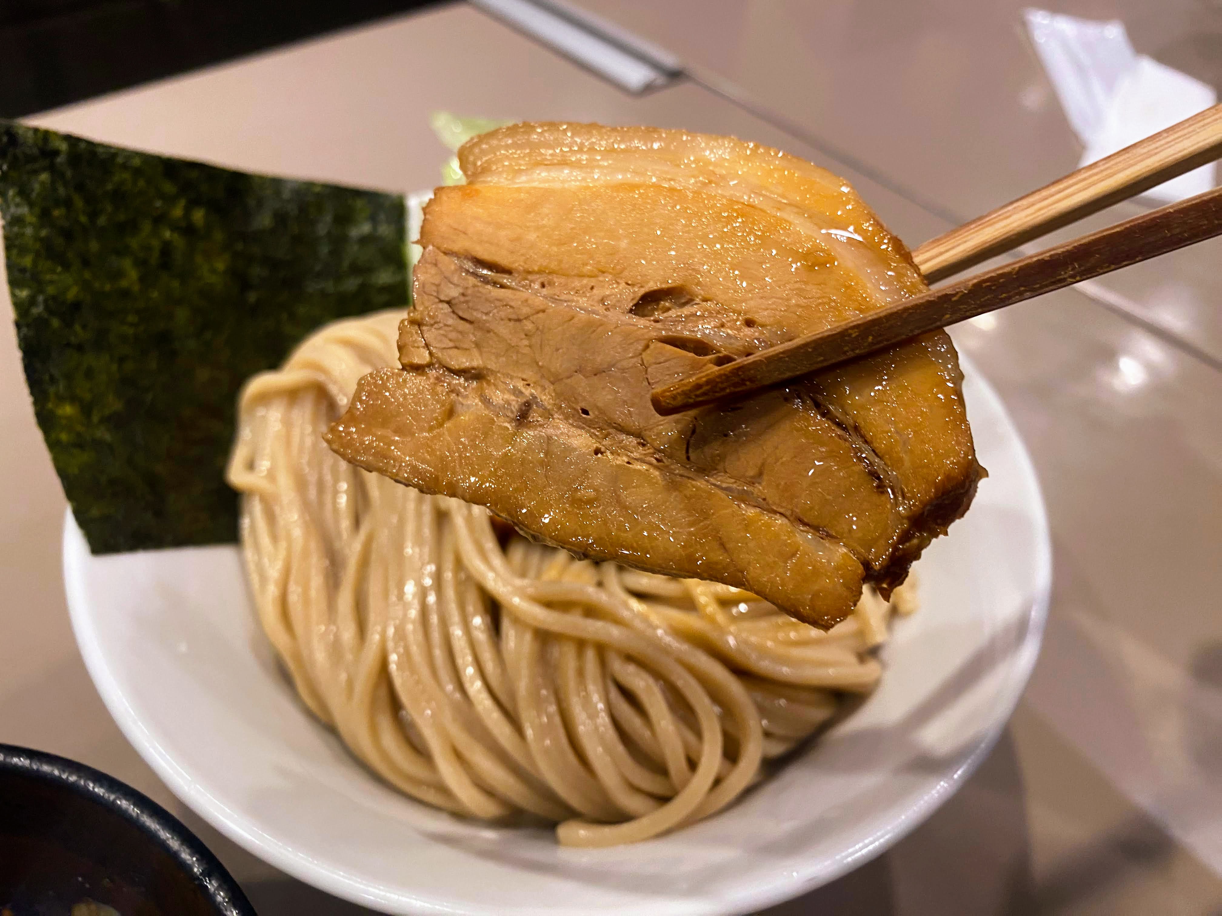 麺のボリューム、つけ方によっては濃度が濃いためつけ汁が最後足りなくなる。その場合は足して頂けるそう。