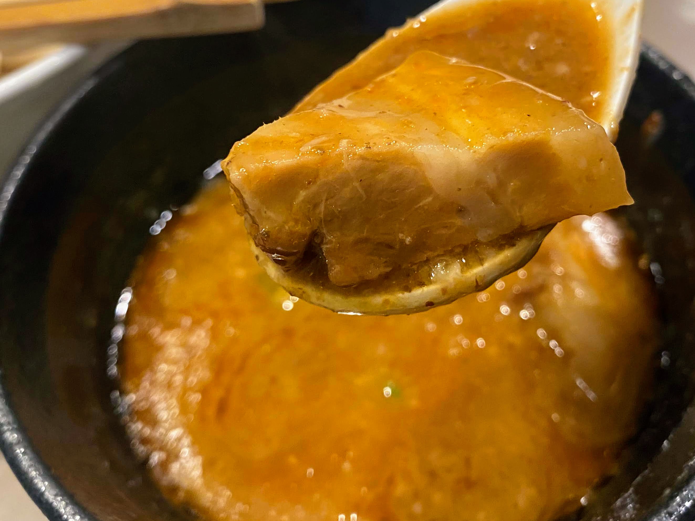 豚骨スープをベースに海老の旨みをたっぷりと加えた高濃度なつけ汁。