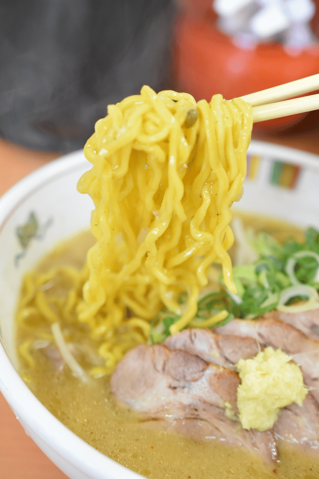 チャーシューの上に乗ったすりおろし生姜を加えるとよりさっぱりとした後味に変わります。」