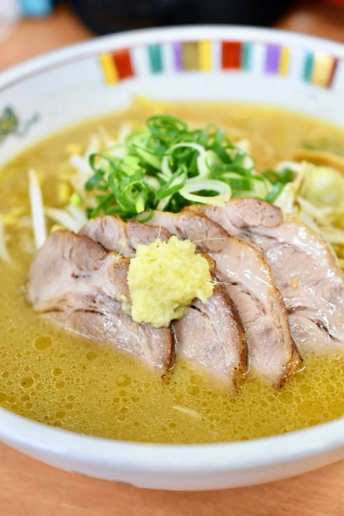 チャーシューの上におろし生姜が乗っている独特なビジュアル。