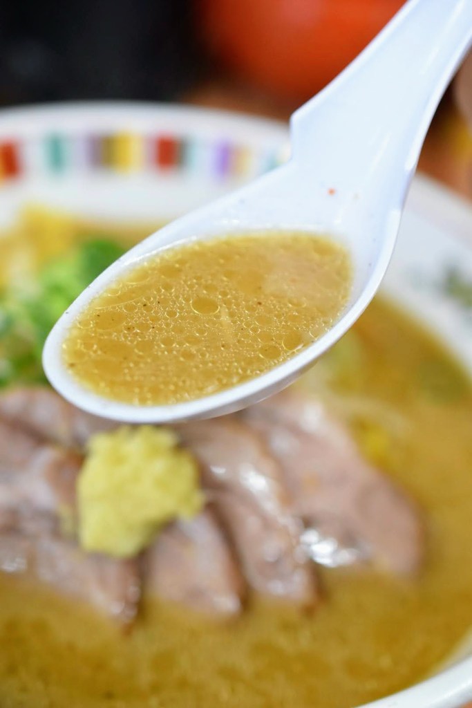 いい意味で味噌が焦げた感じのするスープはかなりの香ばしさ。豚骨の風味も主張しすぎる事なくしっかり下支えしている味わい。