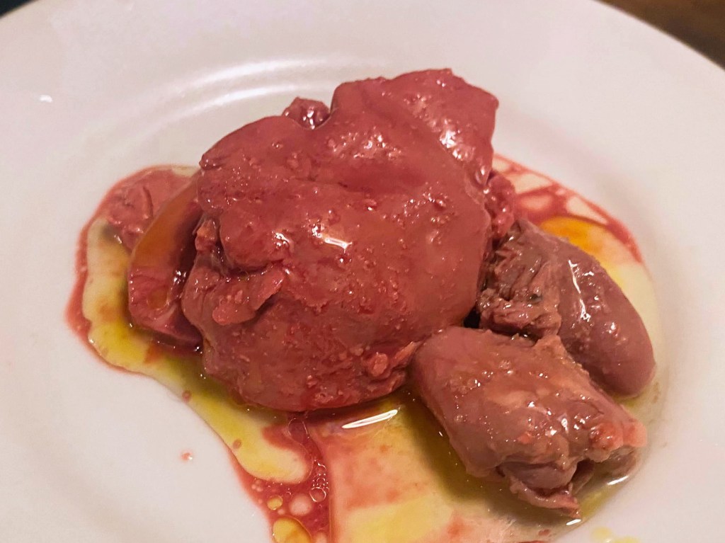 下味を足しただけの究極シンプル。ハツも一緒にコンフィに。レバーはもちろん食感はネットリだが、味わいはそこまで重くなく上品。