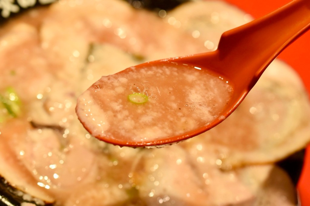 まずは最初にスープを一口。口に含むとフワフワな、所々感じるトゥルトゥルな。脂なのにしつこくない‼︎
