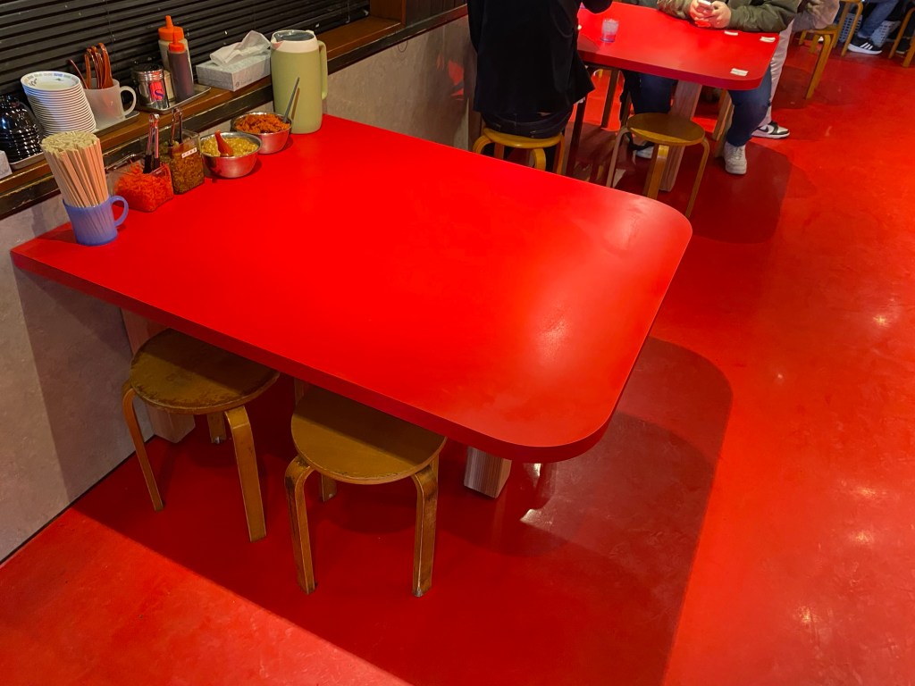 床・テーブル共に「真っ赤」。さすが火の国です。