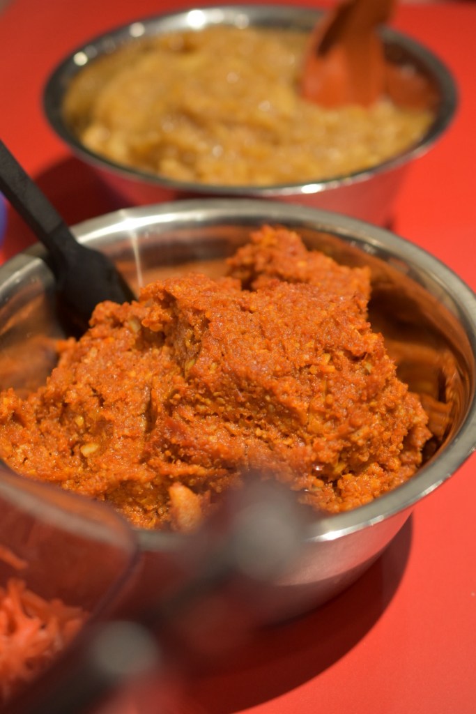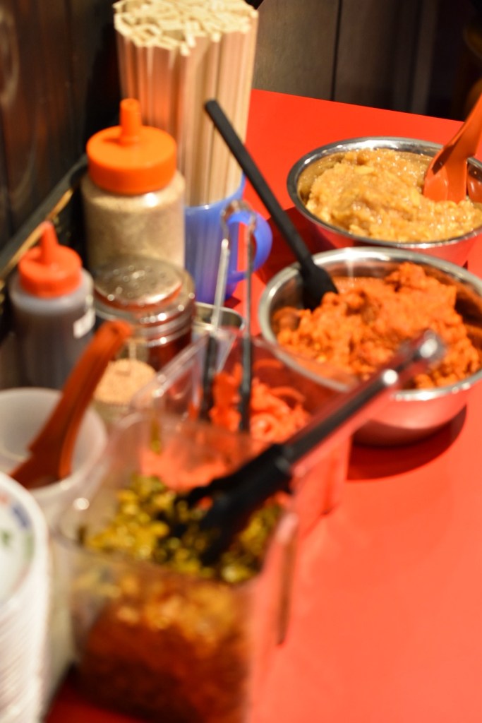 ニンニク味噌などがボウルに盛られて置いてありかなり大胆。