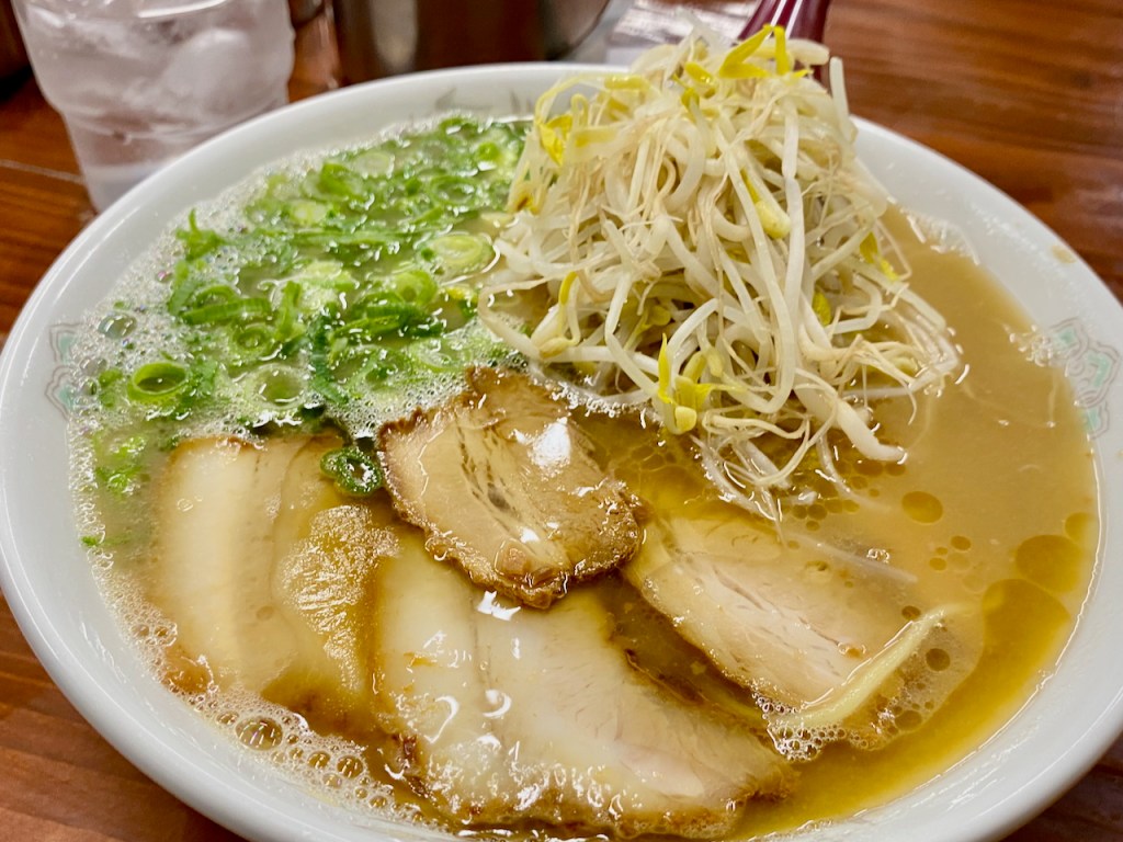 濃厚な豚骨スープと、もちもちとした中太麺が特徴だ。チャーシューやネギ、もやしなどのトッピングも豊富で、自分好みのラーメンを楽しめる。