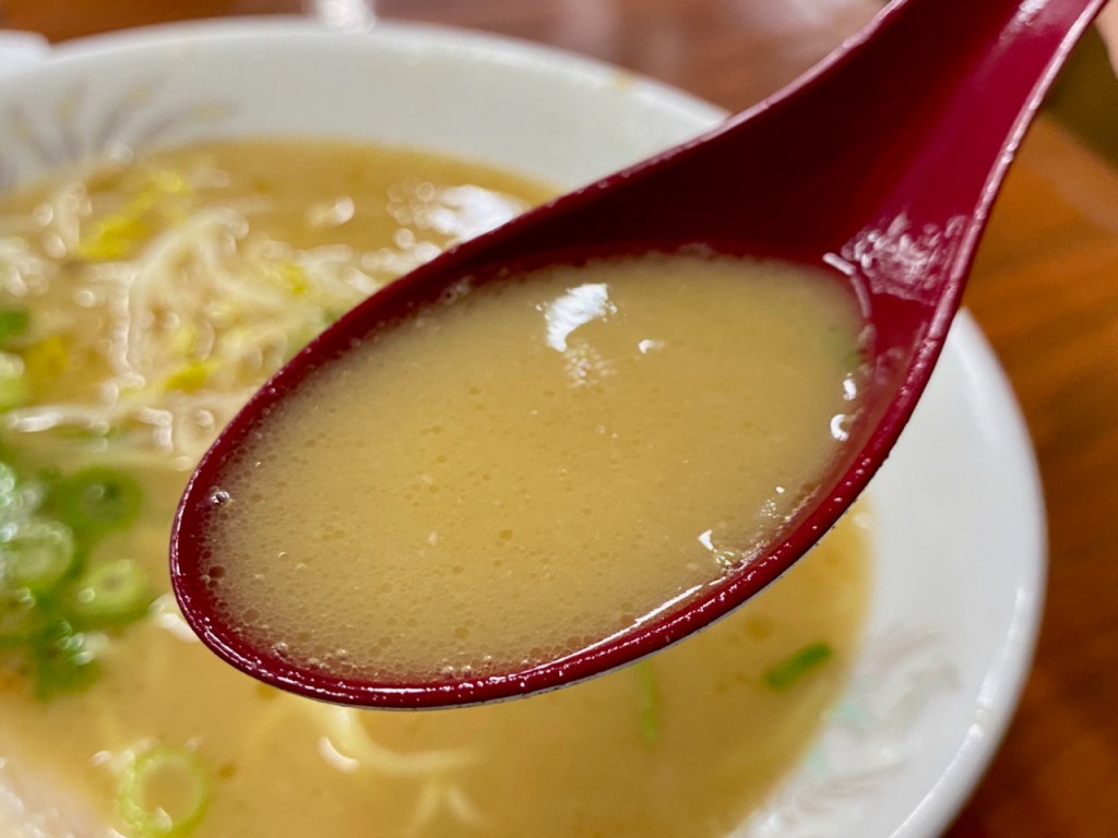 濃厚でとろみのある豚骨スープ。『昔ながらの宮崎ラーメン』がコンセプト。丁寧に下処理され臭みを取り除いた豚骨を「三段製法」で仕込まれるというスープ。