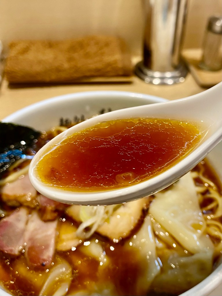 ご主人の作業を拝見していると、都度都度包んでいる様。ツルッとしたワンタンの皮がこれまたスープを纏ってワンタン自身の旨味が増幅させている。