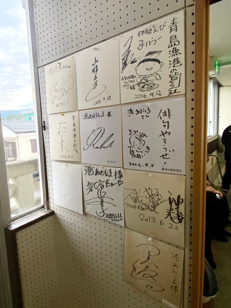 著名人のサイン色紙。多くのテレビ番組や有名人が訪れていることがうかがえる。石塚さんのサインがあれば間違いない‼︎