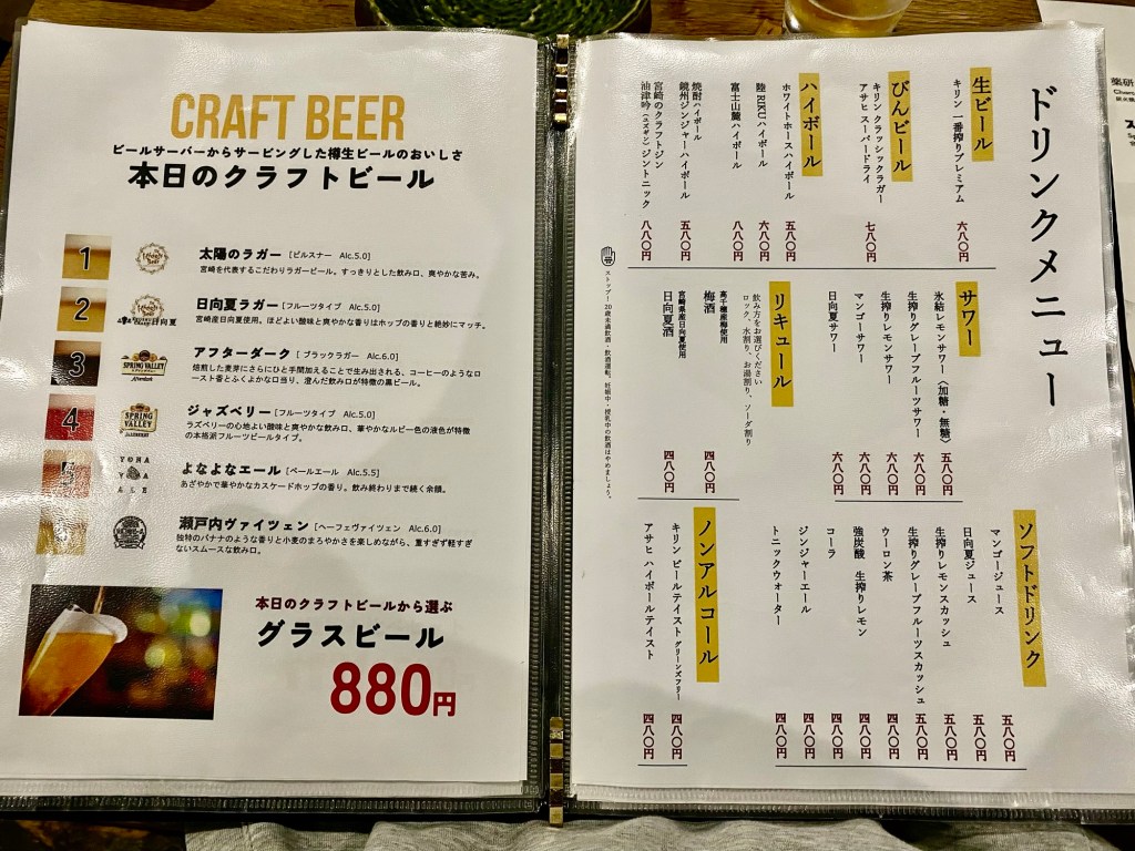 宮崎の焼酎や150種類を超えるクラフトビールの品揃えも豊富で、地元客や観光客に愛される居酒屋。